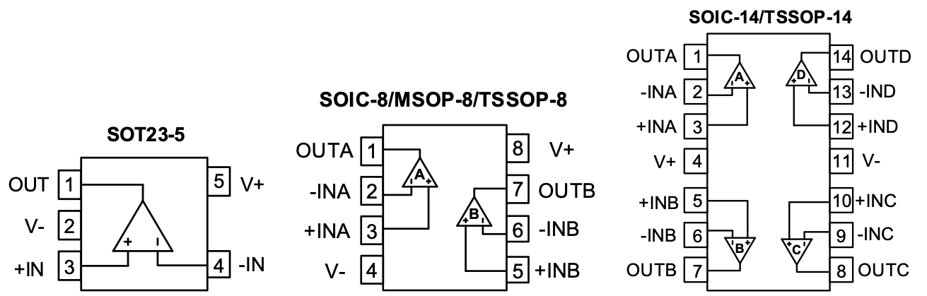 封裝形式:SOT23-5/SOIC-8/TSSOP-8/MSOP-8SOIC-14/TSSOP-14
