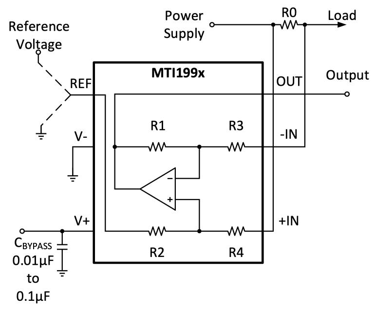 MTI199x 為電壓輸出、分流監(jiān)控器(也稱作電流感測(cè)放大器)。該器件通??舍槍?duì)系統(tǒng)優(yōu)化提供過(guò)流保護(hù)和精密電流測(cè)量,還常用于閉環(huán)反饋電路。