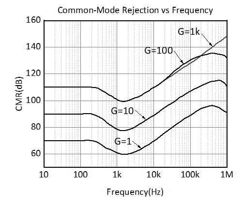 MTI0326具有靈活的增益設(shè)置,且精度極高,因此可以廣泛應(yīng)用在對直流精度有較高需求的應(yīng)用中。出色的長期穩(wěn)定性、極低的1/f噪聲、極低的溫漂確保在產(chǎn)品的整個(gè)使用壽命中均具有極高的直流精度。但由于電路原理為電流拷貝,變化增益時(shí),R1值越小輸入失調(diào)電壓越小,共模抑制比越好。建議根據(jù)實(shí)際情況選擇盡可能低的R1值。但VIN/R1不能超過250uA。