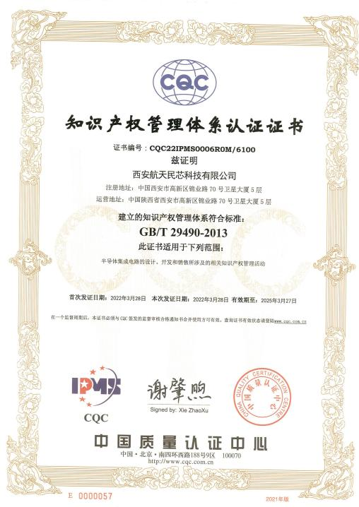 西安航天民芯科技有限公司于2022年3月20日通過(guò)知識(shí)產(chǎn)權(quán)管理體系現(xiàn)場(chǎng)認(rèn)證,并正式授予證書(shū)。